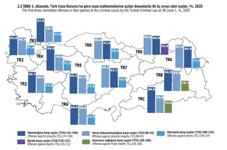 Ortaya çıkan tablo, Türkiye’de milyonlarca kişinin doğrudan ya da dolaylı biçimde yargı süreçleriyle karşı karşıya kaldığını ve adliyelerin gündelik hayatın önemli bir parçası haline geldiğini gösteriyor. Kaynak - https://www.yenicaggazetesi.com/turkiyenin-suc-karnesi-ortaya-cikti-o-suclarin-dava-dosya-sayisi-listeye-damga-vurdu-1017962h.htm https://t24.com.tr/yazarlar/gokcer-tahincioglu-yuzlesme/58-milyon-yetiskin-nufus-45-milyon-dosya-turkiyenin-adliyeler-ile-imtihani,54693