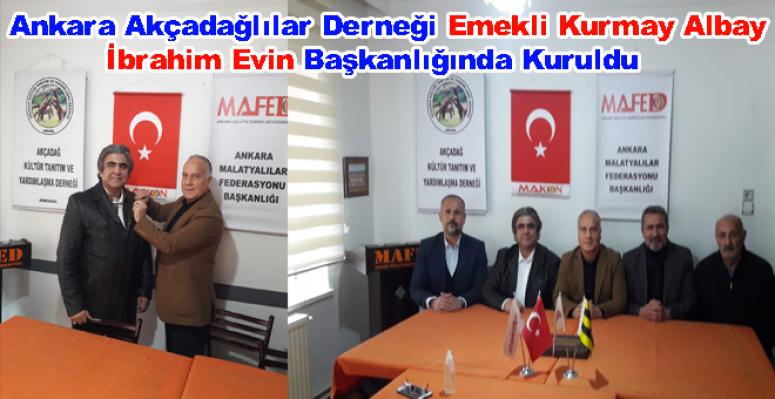 Ankara'da yaşayan Akçadağ'lılar Emekli Kurmay Albay İbrahim Evin Başkanlığında Ankara Akçadağlılar Derneği'ni Kurdu.