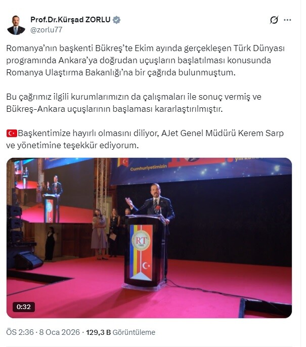 Ankara ile Bükreş arasında yıllardır bulunmayan direkt uçuşlar, AK Parti Türk Devletleri ile İlişkiler Başkanı Prof. Dr. Kürşat Zorlu’nun devreye girmesiyle resmî gündeme taşındı.