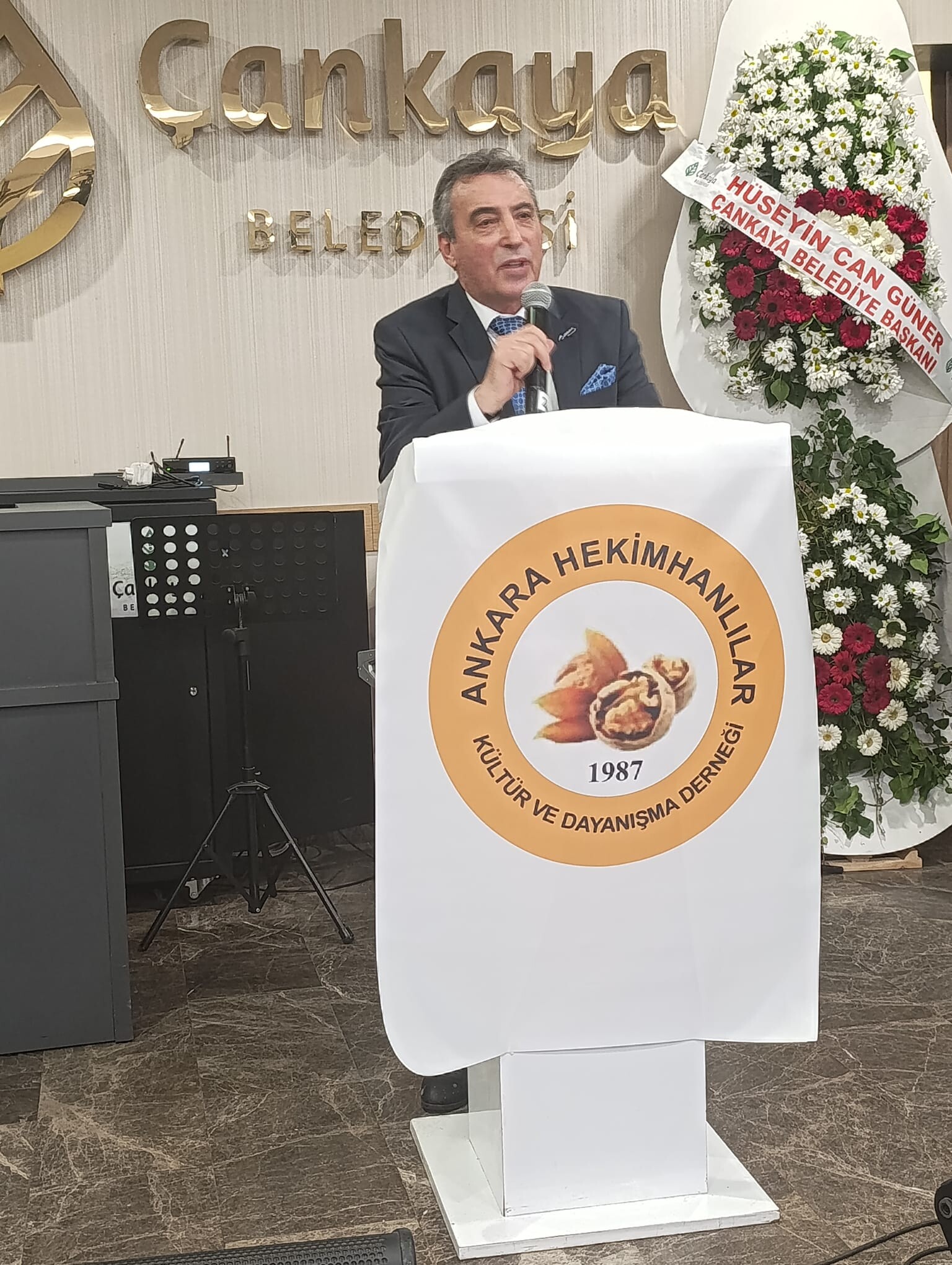 Başkan Vahap Uzunoğlu, katılımcılara teşekkür ederek derneğin yürüttüğü çalışmalara ilişkin bilgi paylaştı. Başkan Uzunoğlu, Ankara ve Bölge İllerde yaşayan Hekimhanlıların tanışıp kaynaşması adına bu tip etkinlikleri geleneksel olarak sürdürüyoruz ve Ankara ile Hekimhan arasında sosyal ve kültürel köprü oluşturmaya devam ediyoruz. Yıllardır Ankara’da bulunan yüzlerce öğrenciye burs vermeye devam ediyoruz. Bu sene Hekimhan’da yüzlerce öğrenciye hayır severler ve yönetim kurulumuzun desteği ile kırtasiye, okul çantası ve giyecek yardımında bulunduk. Göreve geldiği günden bugüne kadar bizlerin yanında olan desteğini bizlerden asla esirgemeyen Hemşerimiz Çankaya Belediye Başkanı Hüseyin Can Güner’e de tüm Hekimhan ve Malatyalılar adına teşekkürlerimi sunuyorum… Ayrıca bugün burada salonu hınca hınç dolduran desteğini hiç bir zaman esirgemeyen Bizleri her zaman destekleyen yanımızda olan ve siz kıymetli hemşerilerime şahsım ve yönetim kurulum adına teşekkür ediyorum dedi.