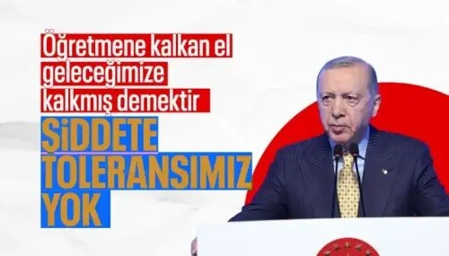 Cumhurbaşkanı Erdoğan, konuşmasında öğretmenlere yönelik şiddet olaylarına da sert tepki gösterdi. “Fatma Nur Çelik öğretmenimizin maruz kaldığı gibi menfur şiddet olaylarını lanetlediğimizi, bunların kökünün kazınması gerektiğini vurguluyorum” dedi.