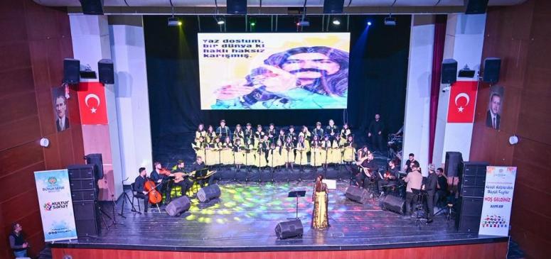 Malatya Büyükşehir Belediyesi Sanat Merkezi çocuk korosu, “Küçük Kalplerden Büyük Ezgiler” konseriyle izleyenleri büyüledi. Başkan Sami Er, çocuklarla sahnede halay çekip türküye eşlik etti. |