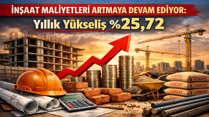 İnşaat maliyet endeksi, bir önceki aya göre %1,51 artarken, geçen yılın aynı ayına göre %25,72 yükseldi. Aylık artışta malzeme fiyatları belirleyici olurken, malzeme endeksi %2,33 arttı, işçilik endeksi ise %0,20 yükseldi.