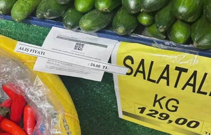 Alanya’da üreticiden 20 TL’ye alındığı belirtilen salatalık zincir markette 129 TL’ye satıldı. Üretici ile raf arasındaki 109 TL’lik fark sosyal medyada gündem oldu.