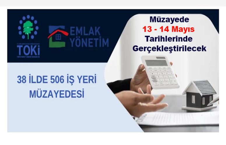 TOKİ GÜVENCESİYLE 38 İLDE 506 İŞ YERİ MÜZAYEDESİ Türkiye genelinde 38 ilde toplam 506 iş yeri, TOKİ güvencesiyle açık artırma yöntemiyle satışa sunuluyor. 13-14 Mayıs 2026 tarihlerinde saat 10:30'da gerçekleşecek müzayedeye İstanbul ve Ankara salonlarından fiziksel olarak veya online olarak katılım sağlanabilir.