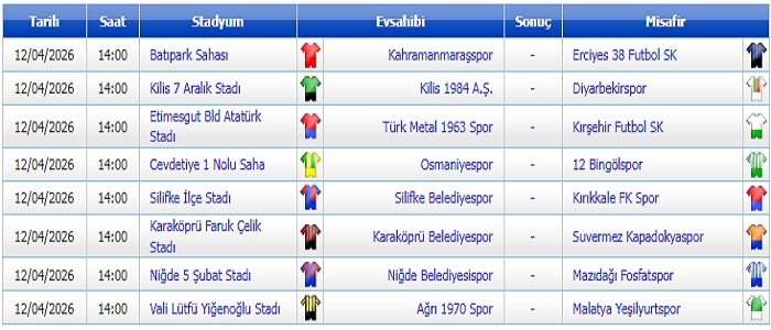 | Ağrı 1970 Spor - Yeşilyurtspor 12 Nisan Pazar Saat ; 14.00'da | ||