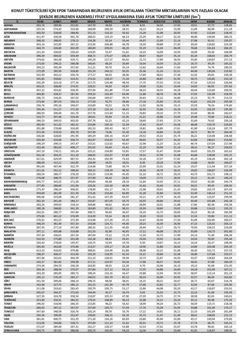 Örneğin İstanbul ve Ankara gibi büyük şehirlerde kış aylarında ortalama tüketimin 200 metreküp olduğu varsayıldığında, bu miktarın yaklaşık yüzde 75 üzerinde tüketim yapan aboneler destek kapsamı dışında kalacak. Yaz aylarında ise tüketim daha düşük olduğu için limitler de aşağı çekilecek. Bu sistemle birlikte, tüketim arttıkça ödenecek fatura da doğrudan yükselecek.