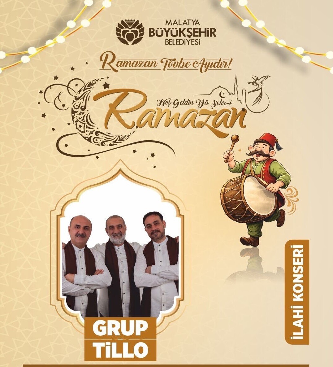 Malatya Büyükşehir Belediyesinin 2026 Ramazan etkinlikleri kapsamında düzenlediği Grup Tillo ilahi konseri, Malatyalılardan yoğun ilgi gördü. Sanat Merkezi’nde gerçekleştirilen programda seslendirilen ilahiler, dinleyicilere duygu dolu anlar yaşattı.