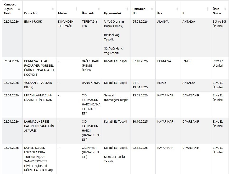 Gıdada Nisan ayı ifşası! Bakanlık hileli ürünler listesini güncelledi: Ünlü bir marka da listede! Güvenilir gıda takibini sürdüren Tarım ve Orman Bakanlığı, vatandaşın sağlığıyla oynayan ve tüketiciyi yanıltan firmaları ifşa etmeye devam ediyor.