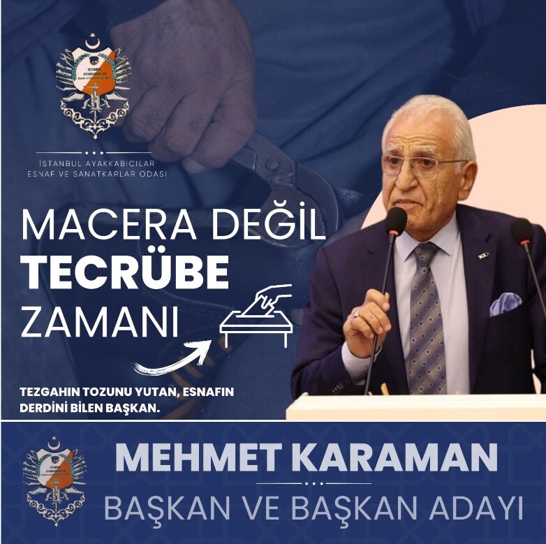 Başkan Mehmet Karaman , Ben mesleğimi çok seviyorum. Bu sektöre çıraklıktan emek verdim. Yaklaşık ayakkabı sektörüne 60 yıllık emek verdim ömür verdim. Allah izin verdiği sürece bu mesleğe devam edeceğim. 60 Yıllık birikimimizle ayakkabı imalatçısının derdini çok yakından biliyorum. Oda Başkanı ve Yönetimimle birlikte yıllardır elimizden gelen gayreti gösteriyoruz. Meslektaşlarımız yakında yapılacak seçimde sandığa gitsin birlik ve beraberliğimizi gösterelim. Allah’ın izni ile kayıt dışı ayakkabı sektöründe faaliyet gösterenlerle mücadele edip sektörün zarar görmesine izin vermeyeceğiz. Özellikle sektörümüzü tekrar ayağa kaldırmak için üyelerimizden bizlere destek olmasını talep ediyorum gelsin üye arkadaşlarımız Salı günü oylarını kullansınlar. Esnaf arkadaşlarımız üye arkadaşlarımız tercihleri ne olursa olsun sandık başına gelsinler. Hep birlikte sektörümüze sahip çıkıp ihracatımızı ve ticaretimizi büyütelim.