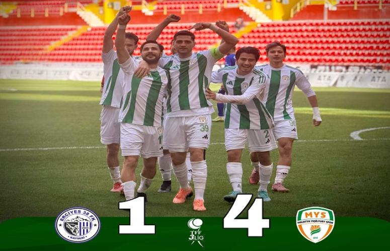 Erciyes 38 Futbol Kulübü 1 - 4 Malatya Yeşilyurtspor TFF 3. Lig 2.Grup'ta Malatya Yeşilyurtspor, deplasmanda karşılaştığı Erciyes 38 Futbol SK’yı 4-1 mağlup ederek önemli bir galibiyete daha imza attı.